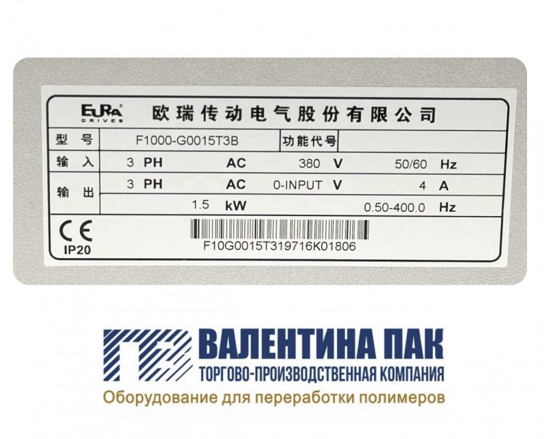 Преобразователь частоты Eura Drives F1000-G0015T3B, 1,5 KW, 380V для экструдера