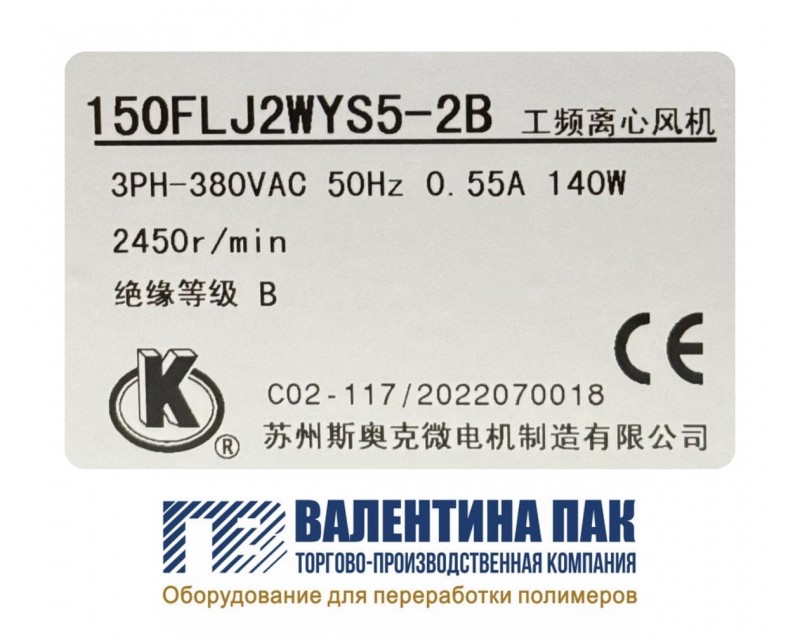 Вентилятор обдува шнека 150FLJ2WYS5-2В для экструдера