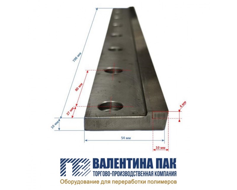 Нож гильотинный 700х54х10 мм, 9 отверстий для пакетоделательных машин
