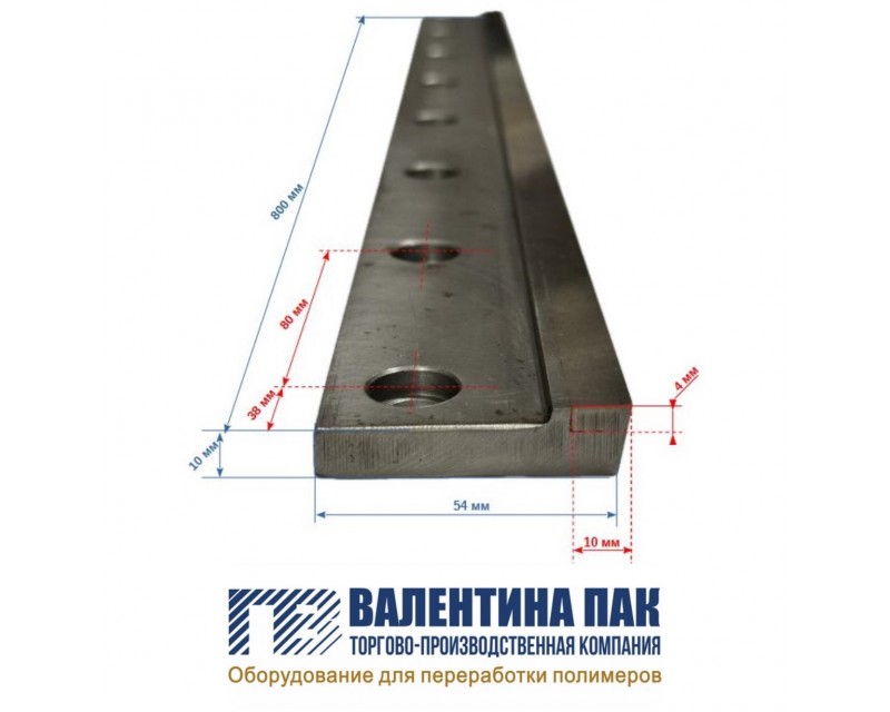 4. Нож гильотинный 800х54х10 мм, 10 отверстий для пакетоделательных машин